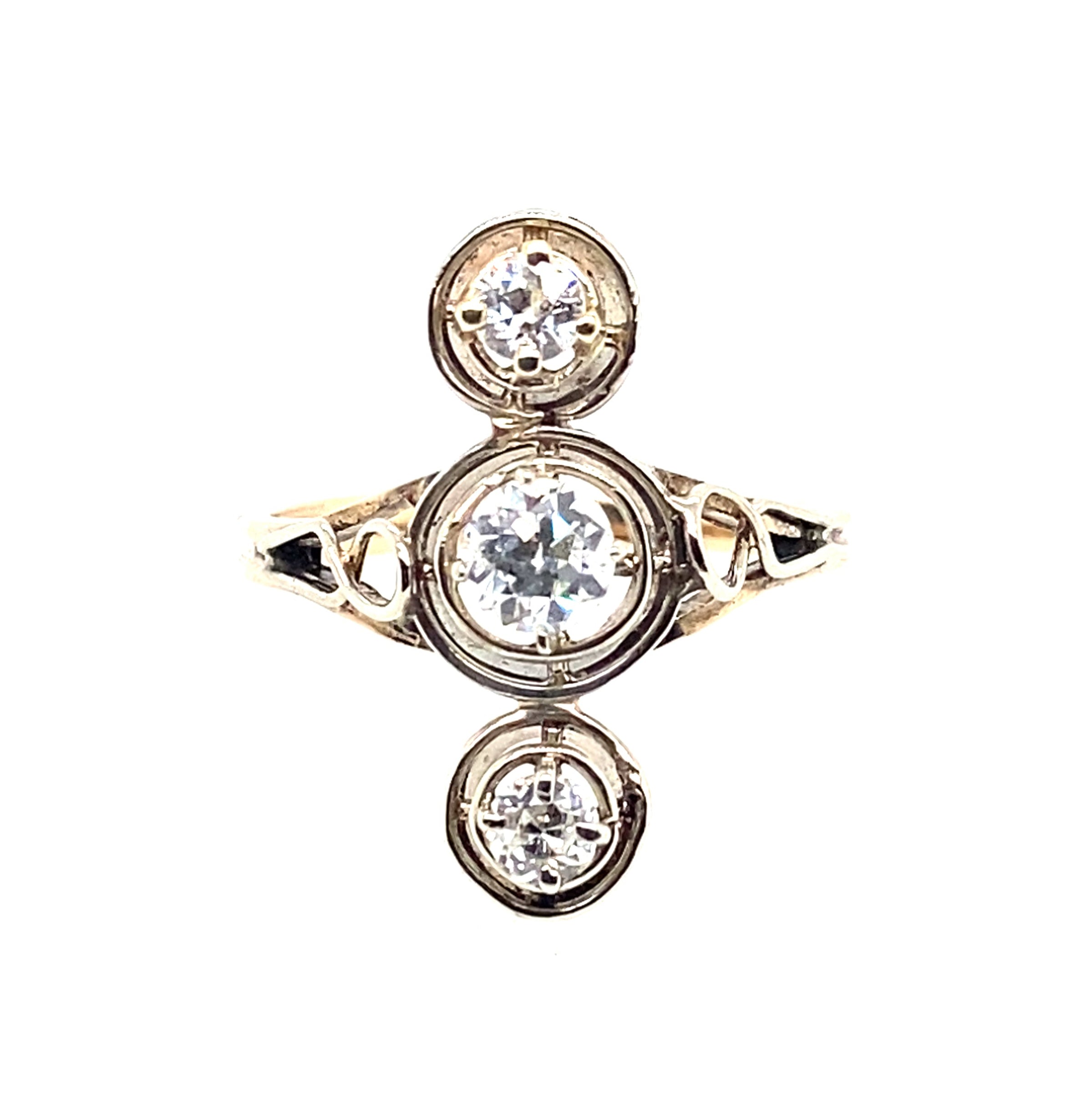 Anello in oro con tre diamanti, 1920 c.a. Mis 13 modificabile